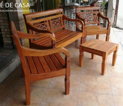 1 banco dois lugares, 2 bancos individuais e uma mesa de centro;